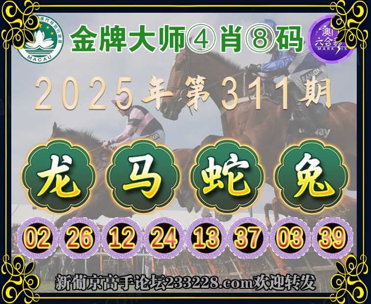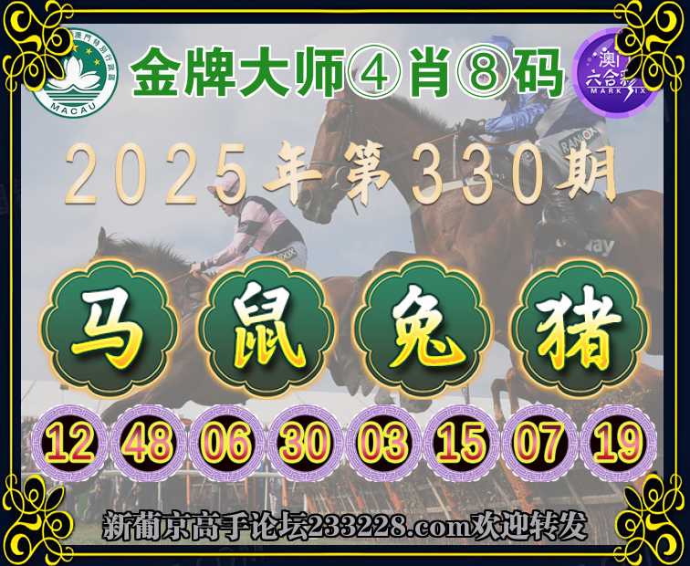 330期:【金牌大师】 🏵️④肖⑧码🏵️【马鼠兔猪】开:马36准