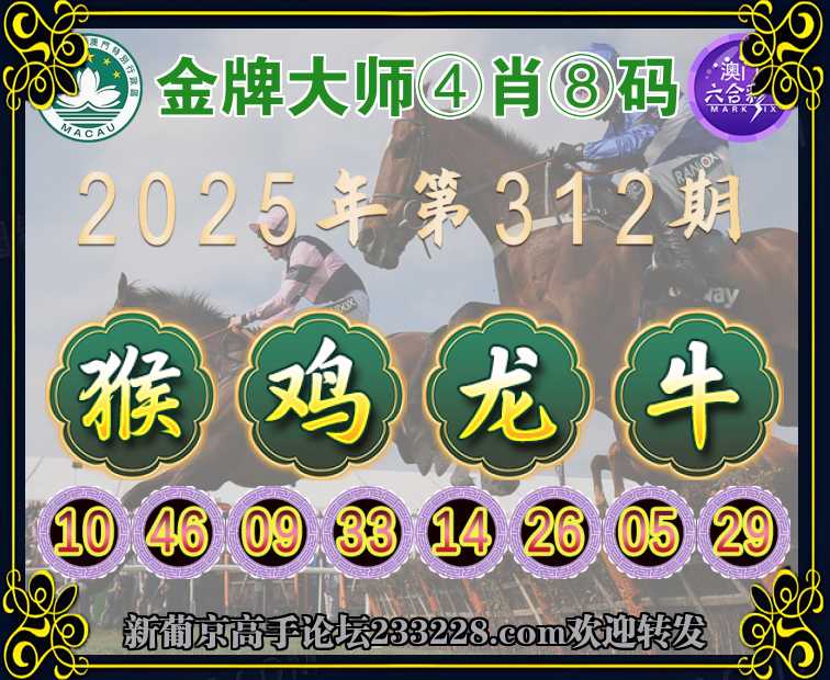 316期:【金牌大师】 🏵️④肖⑧码🏵️【狗鸡马牛】开:马24准