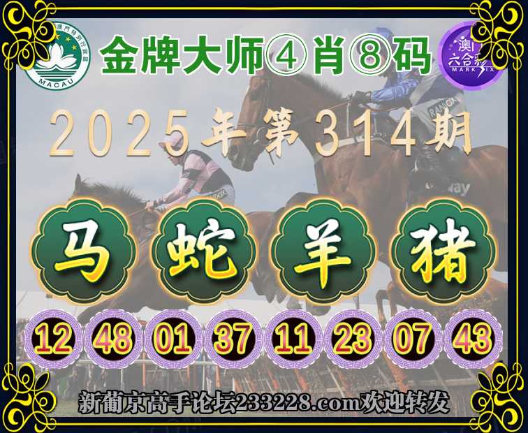 314期:【金牌大师】 🏵️④肖⑧码🏵️【马蛇羊猪】开:羊23准