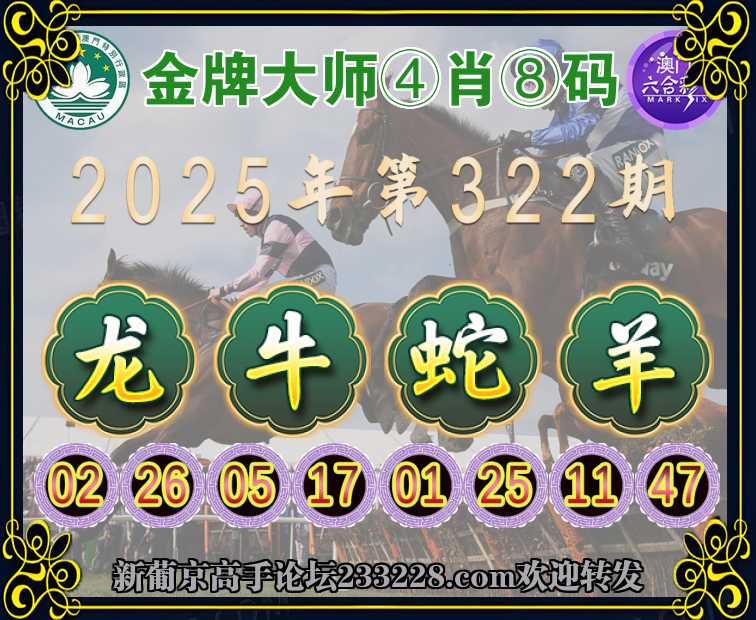 322期:【金牌大师】 🏵️④肖⑧码🏵️【龙牛蛇羊】开:羊47准