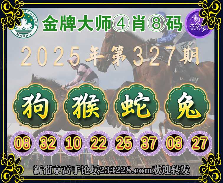327期:【金牌大师】 🏵️④肖⑧码🏵️【狗猴蛇兔】开:蛇37准