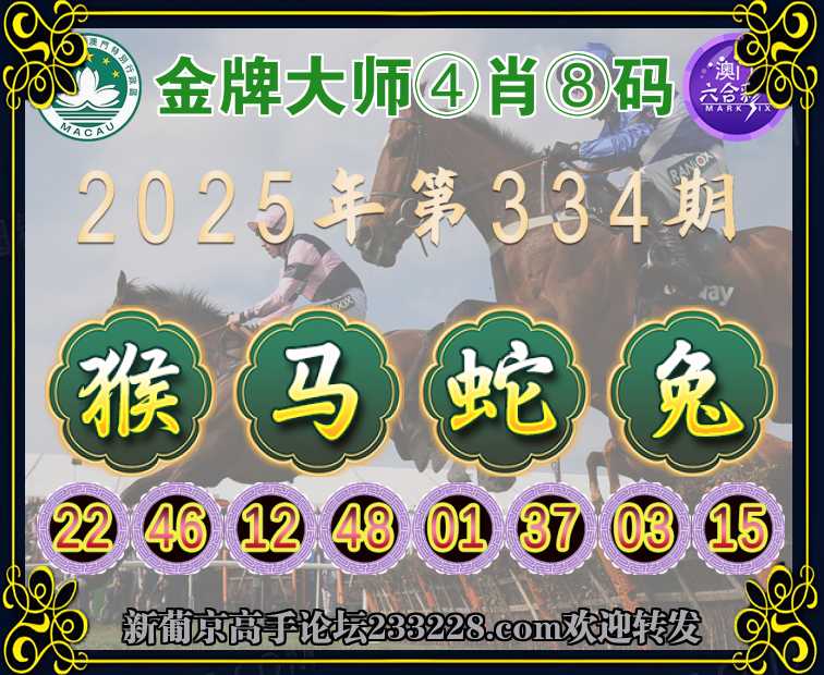 334期:【金牌大师】 🏵️④肖⑧码🏵️【猴马蛇兔】开:猴46准