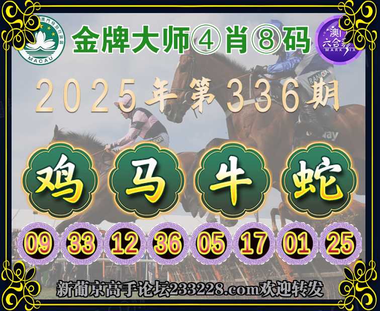 336期:【金牌大师】 🏵️④肖⑧码🏵️【鸡马牛蛇】开:牛17准
