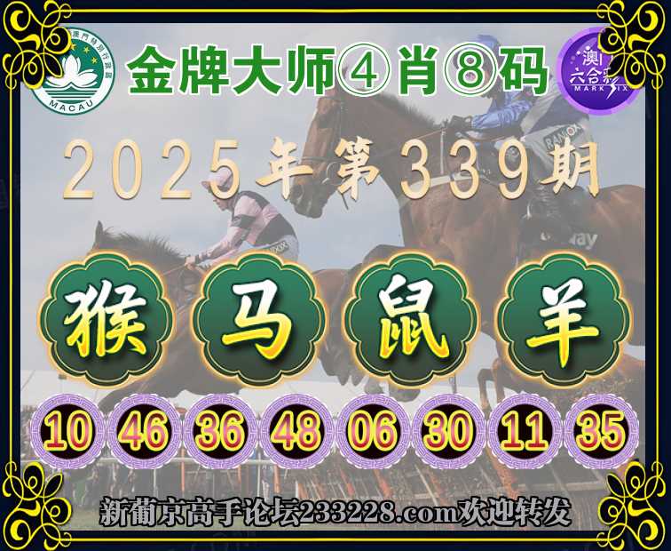 339期:【金牌大师】 🏵️④肖⑧码🏵️【猴马鼠羊】开:马48准