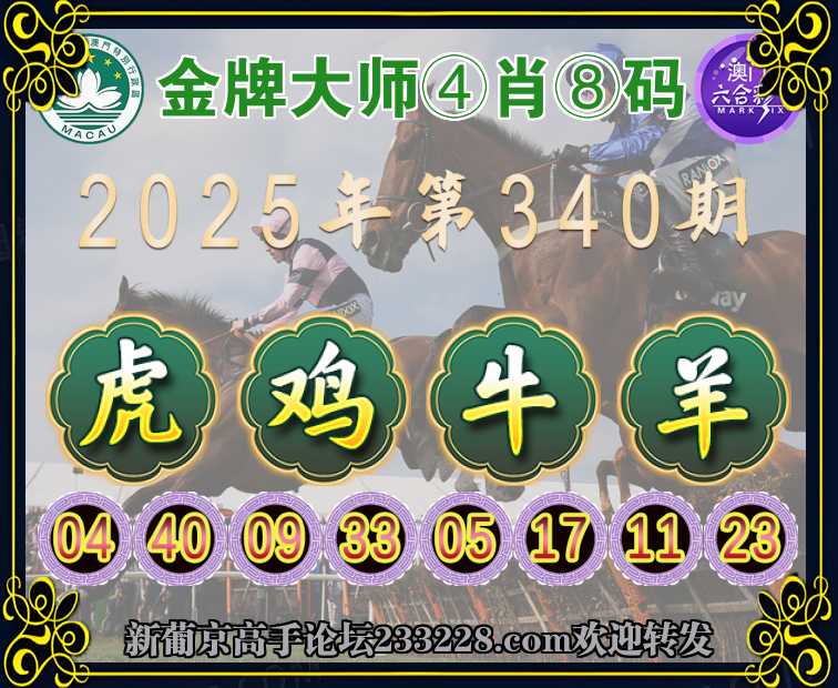 340期:【金牌大师】 🏵️④肖⑧码🏵️【虎鸡牛羊】开:虎16准