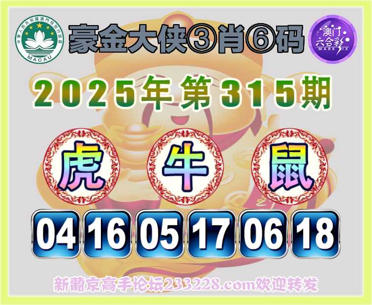 315期:《豪金大侠》 🍅③肖⑥码🍅【虎牛鼠】开:虎04准