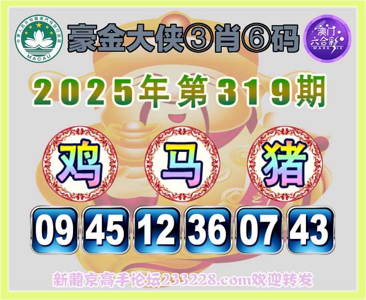 319期:《豪金大侠》 🍅③肖⑥码🍅【鸡马猪】开:鸡45准