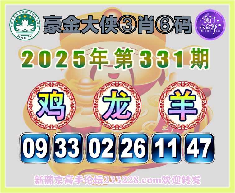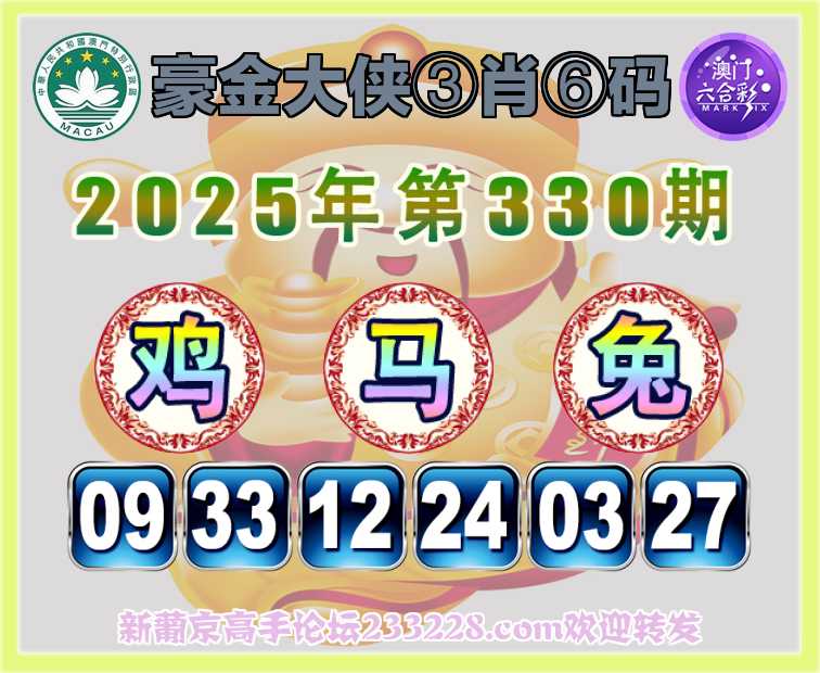 330期:《豪金大侠》 🍅③肖⑥码🍅【鸡马兔】开:马36准