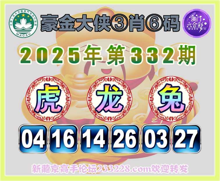 332期:《豪金大侠》 🍅③肖⑥码🍅【虎龙兔】开:龙26准