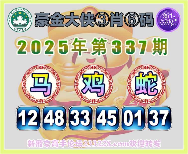 337期:《豪金大侠》 🍅③肖⑥码🍅【马鸡蛇】开:鸡09准